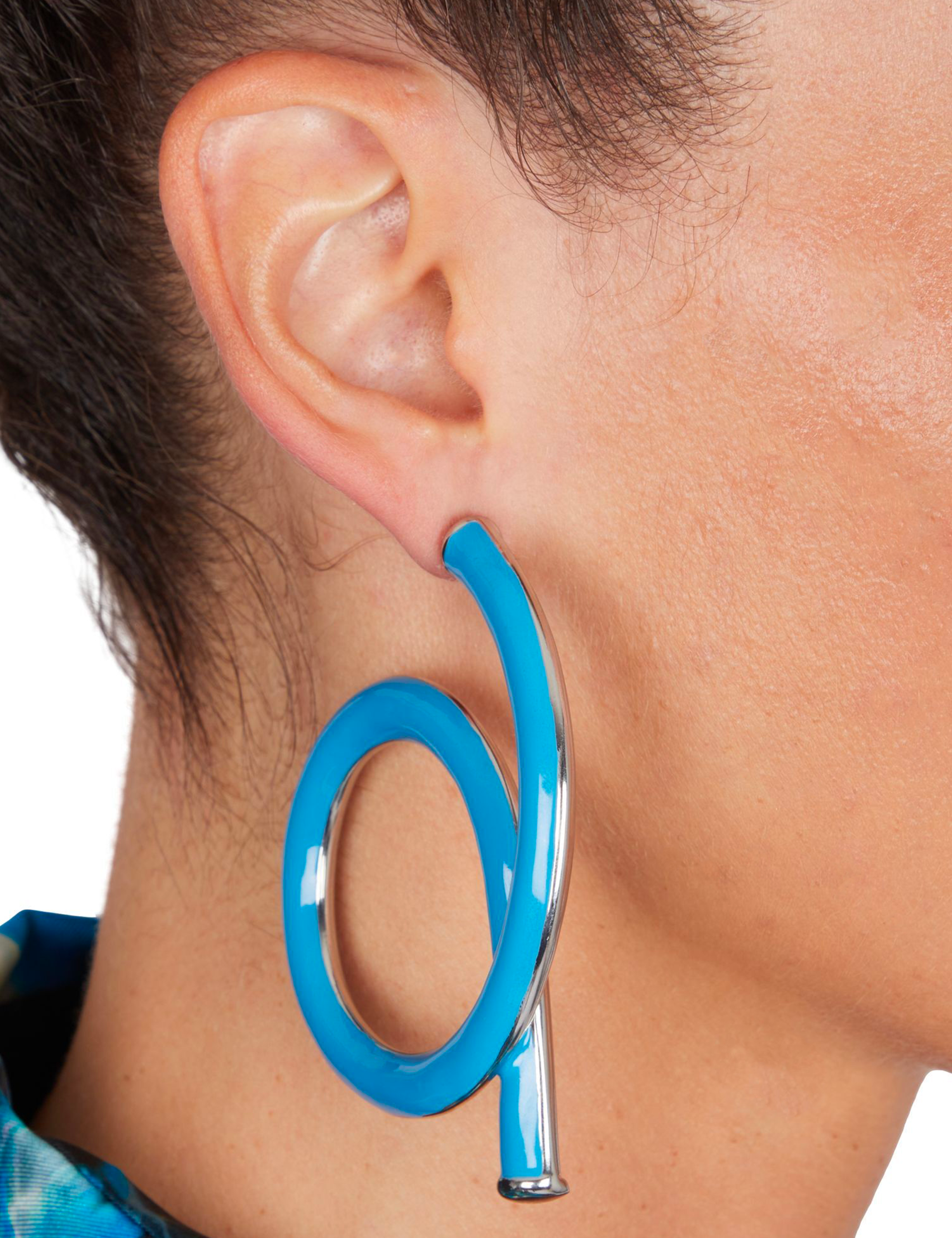 Grandes créoles en émail bleu