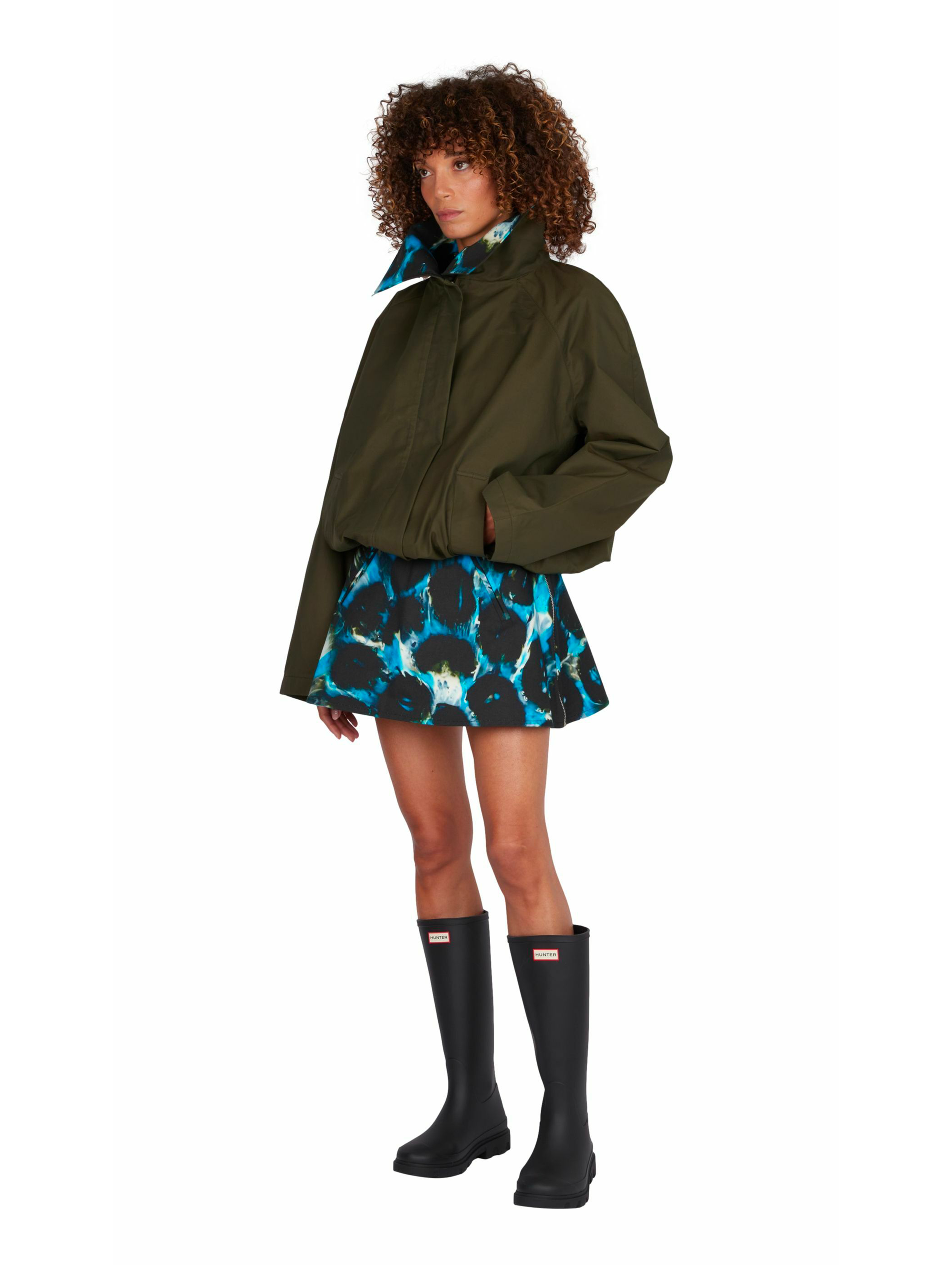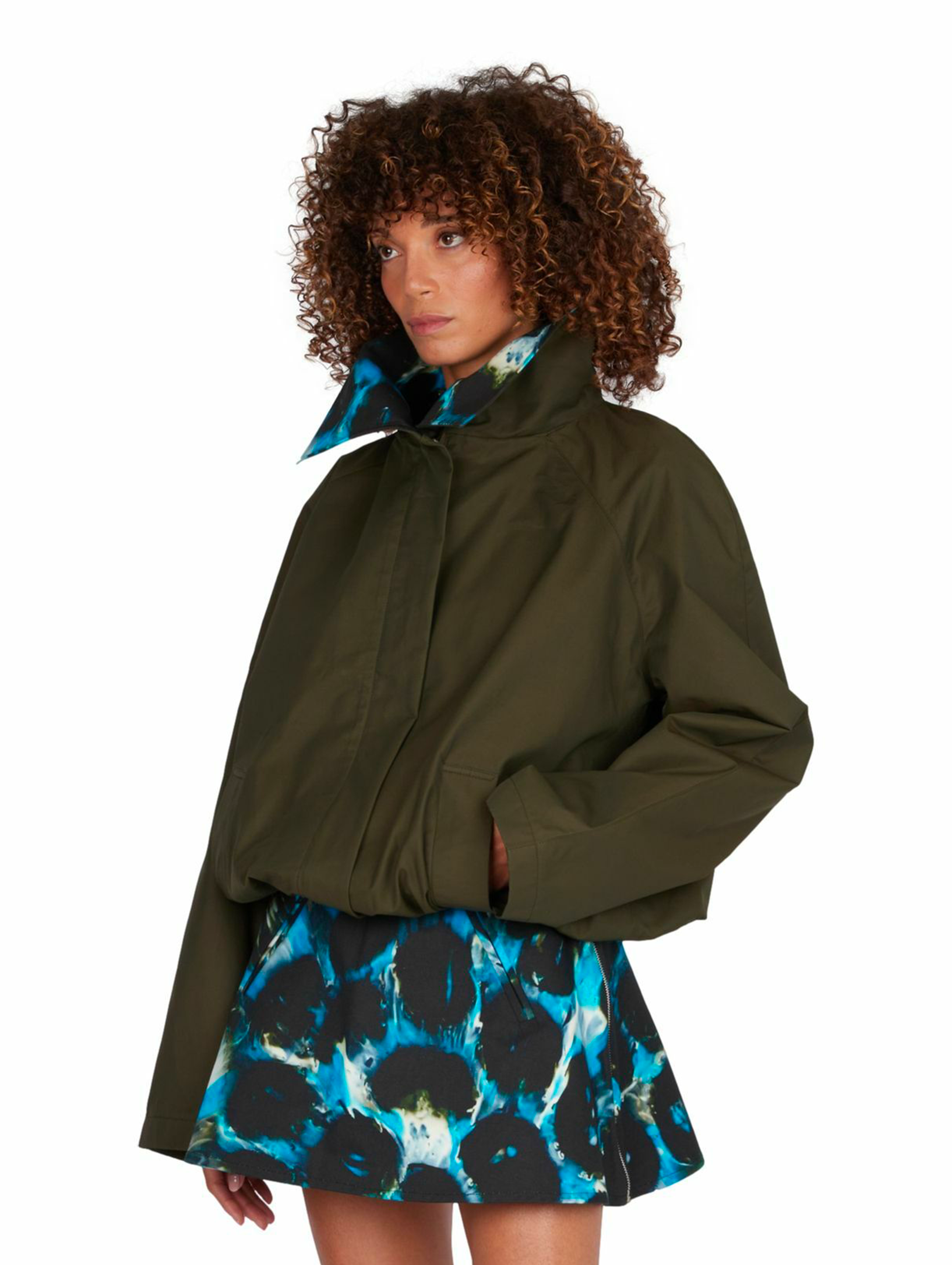 Inside the collar, the brand’s signature print is revealed. Developed from a transformed garden hose using the designer’s exclusive process, this unique motif is printed on cotton and appears in contrast when the collar is worn up, adding an unexpected graphic dimension.