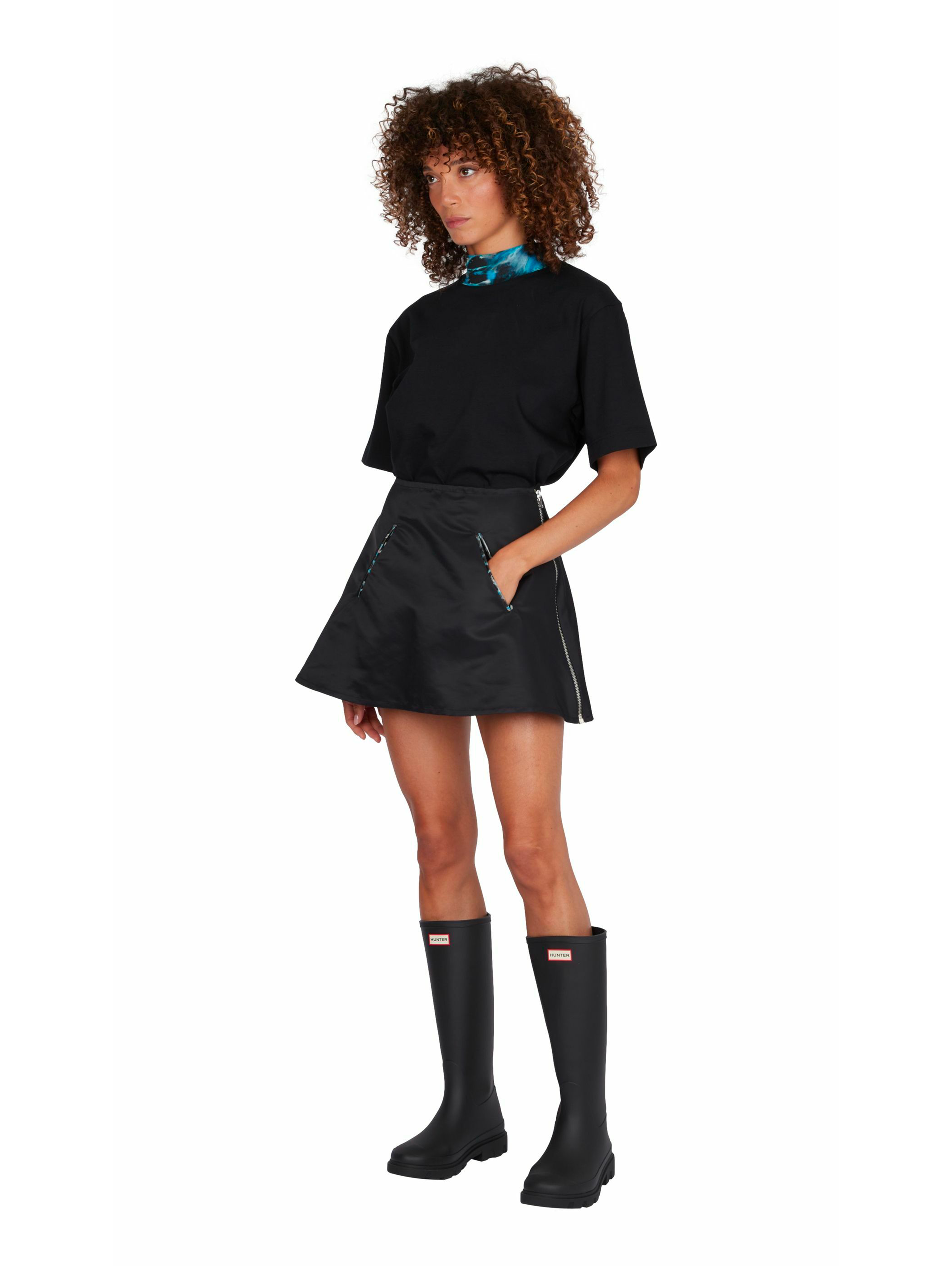Black nylon mini skirt