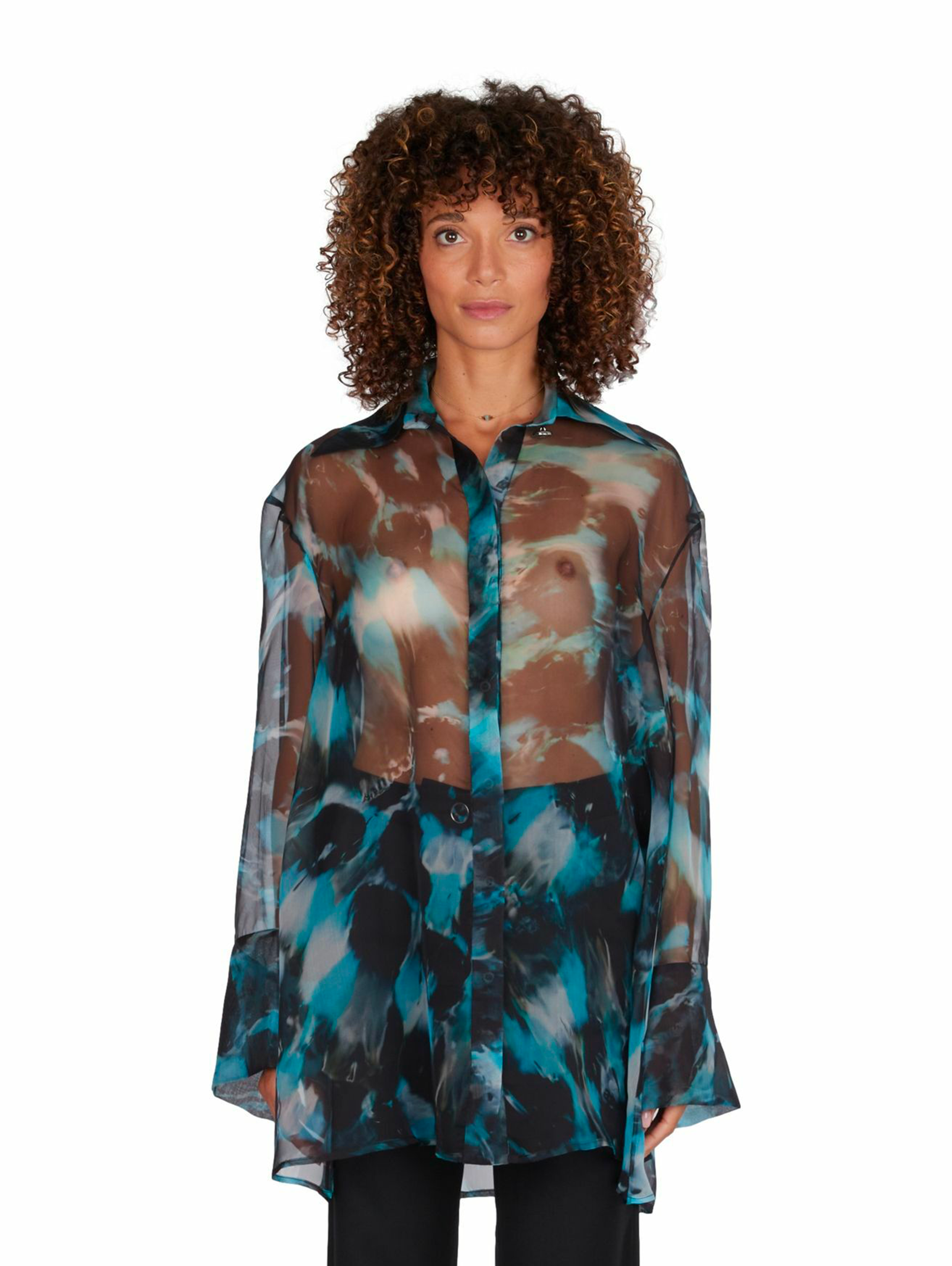 Oversized printed organza shirt
