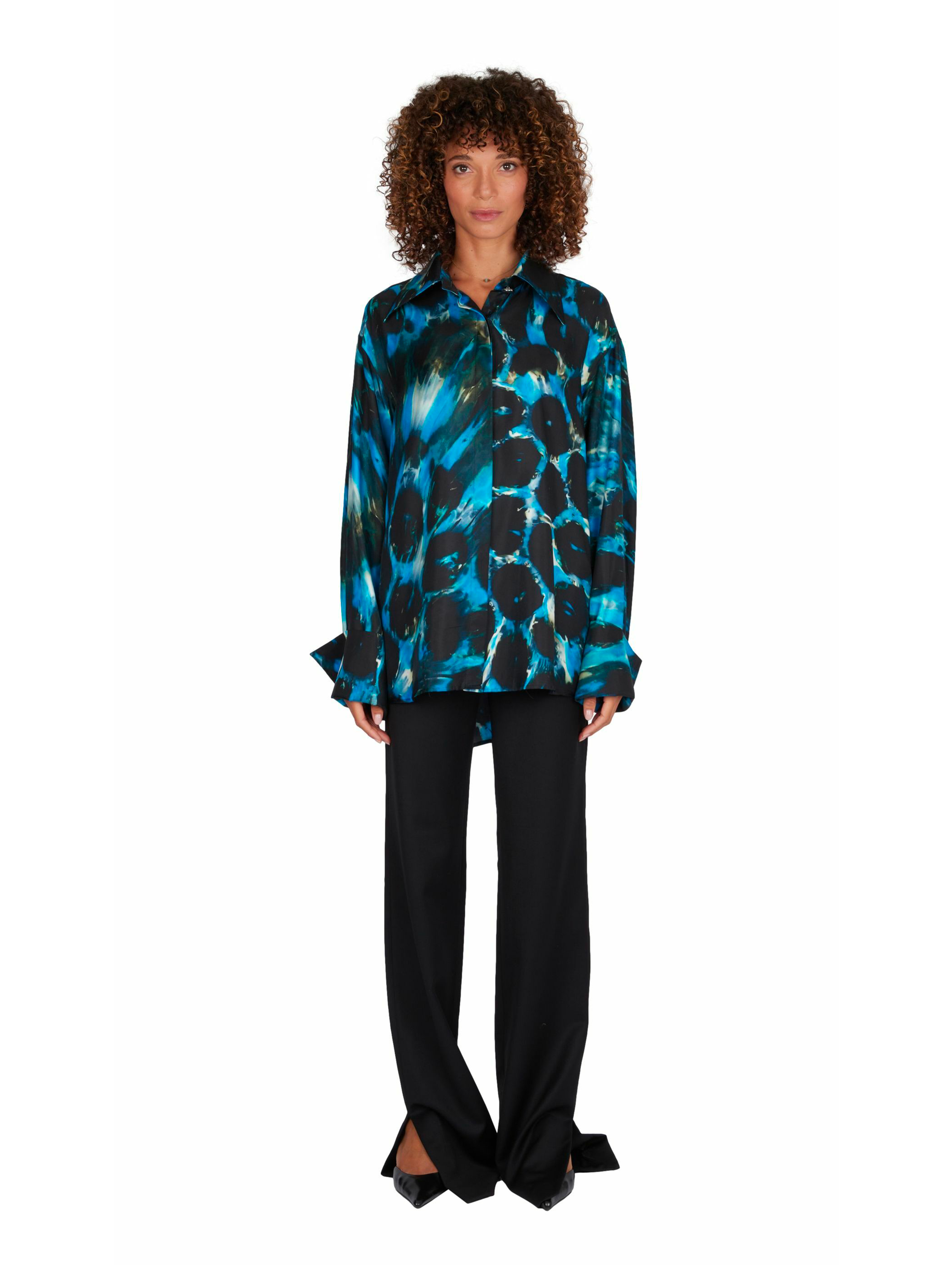 This oversized shirt in printed silk twill embodies SONNEY’s sculptural yet relaxed silhouette.